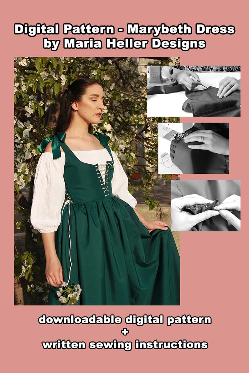 This is a downloadable digital pattern for sewing. The digital file contains the printable pattern and also written instructions on how to use the pattern and sew the Marybeth dress.